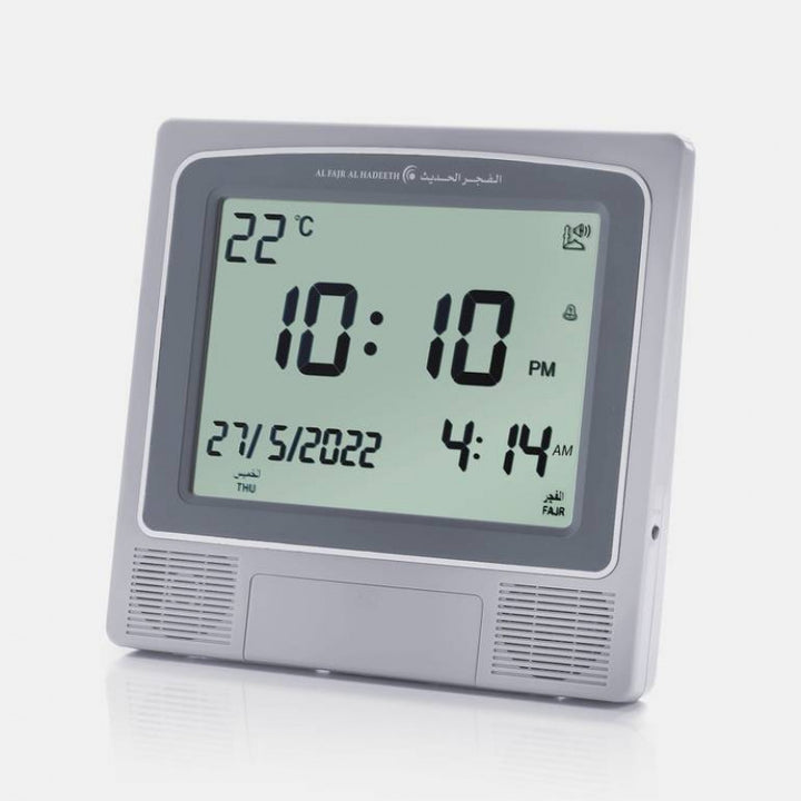 ساعة الفجر الحديث حائط رمادي موديل AL209 مميزات المنتج: أوقات الأذان لجميع مدن العالم. الأذان كاملاً للصلوات الخمس مع توقيت الشروق. منبه لكل صلاة. تاريخ هجري وميلادي. خمس تقاويم مختلفة لحساب الأذان. منبه يومي للمواعيد الثابتة. اللون رمادي المقاس ( 23سم * 22سم )